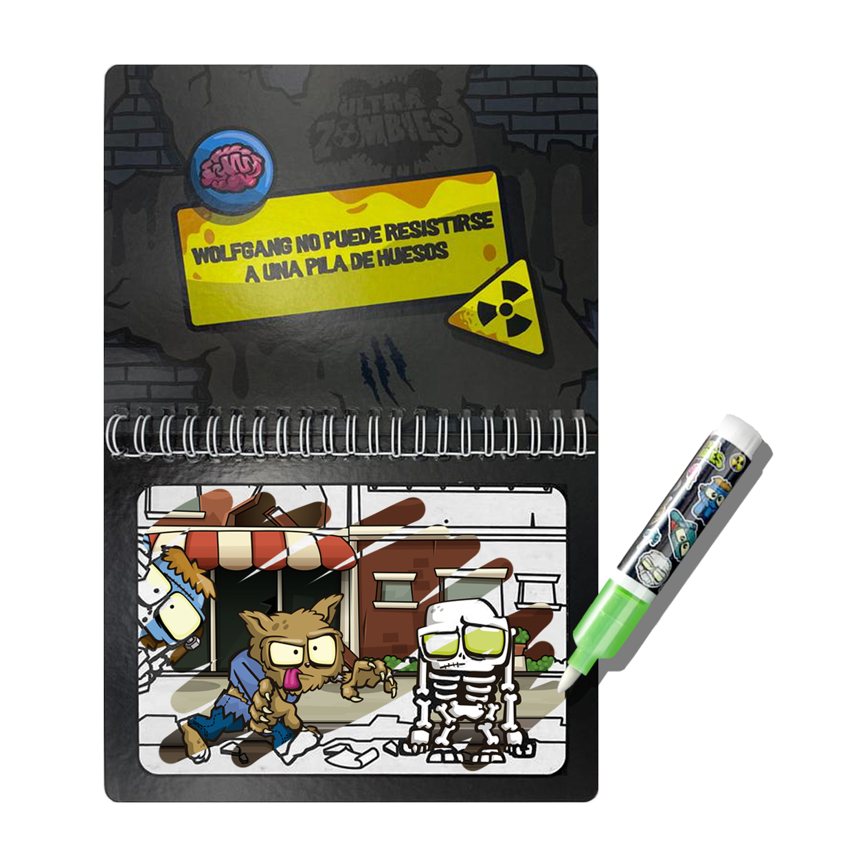 ¡Dale vida a Ultra Zombies con un toque de magia! Este increíble Libro Mágico te permite pintar sin parar gracias a su marcador recargable con agua. Solo pásalo sobre las páginas y verás cómo los colores aparecen mágicamente… ¡Como si un pócima secreta estuviera en acción! Y lo mejor: cuando se seca, el dibujo vuelve a estar en blanco para que sigas divirtiéndote sin límites.