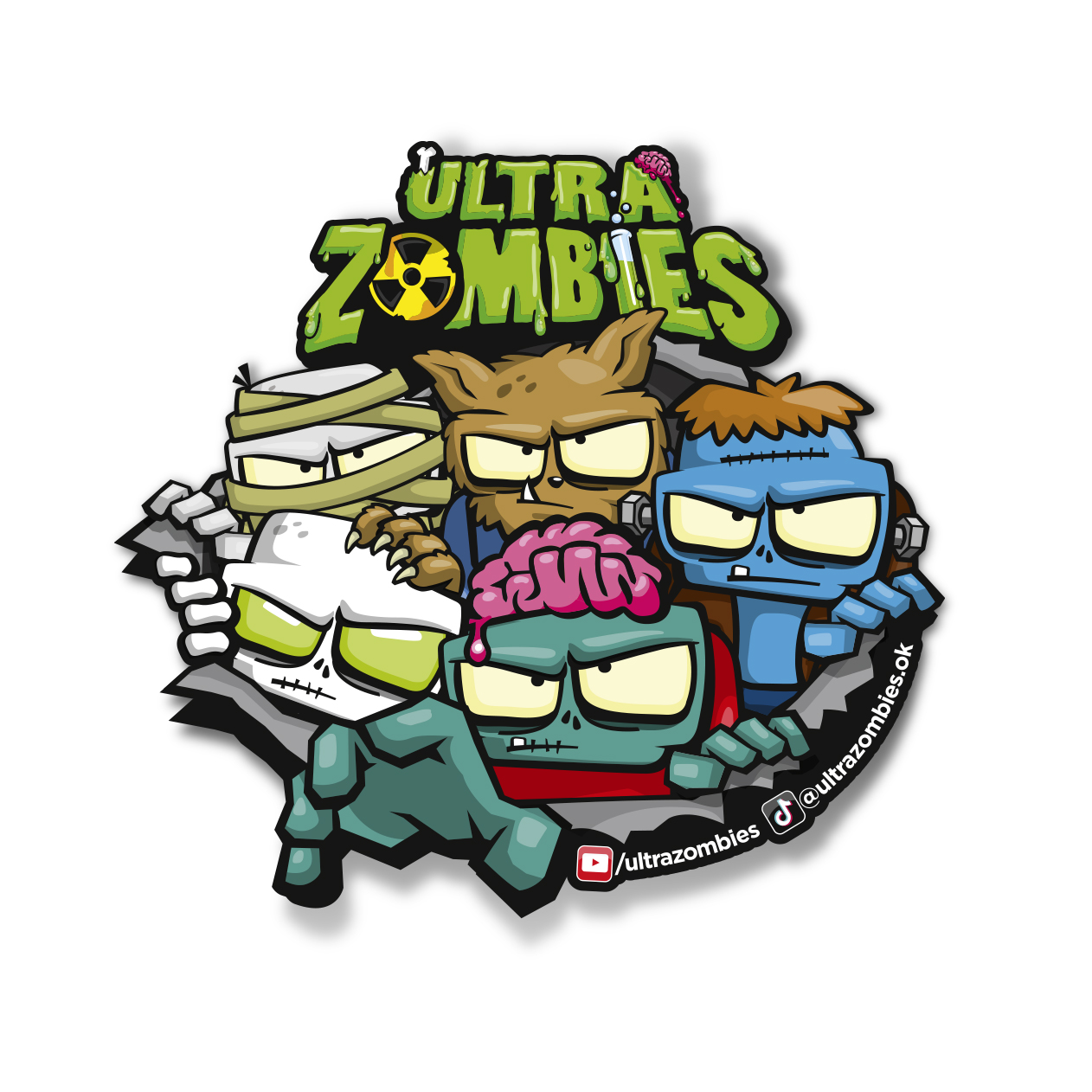 Lleva contigo a Zombiff, Jaime, Wolfgang, Raybolt y Braindage en este increíble sticker de vinilo con un diseño lleno de personalidad. Perfecto para decorar laptops, botellas, cuadernos y cualquier superficie lisa.